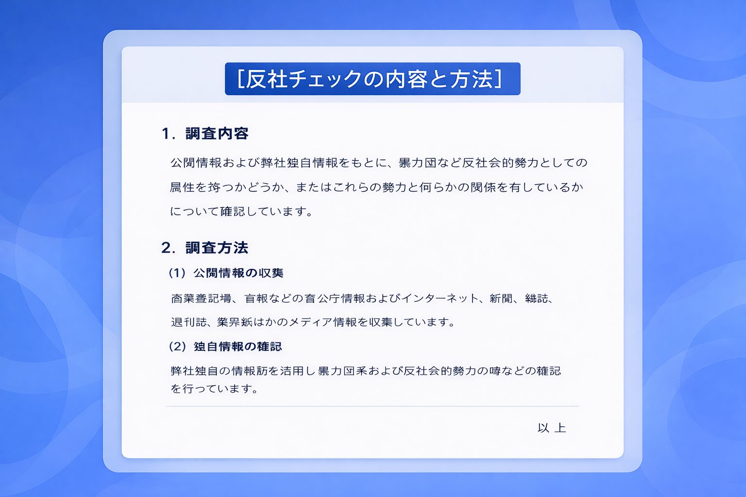 反社チェックの進め方なども網羅していますので、この記事を読めば何から手をつければいいか明確になります。
