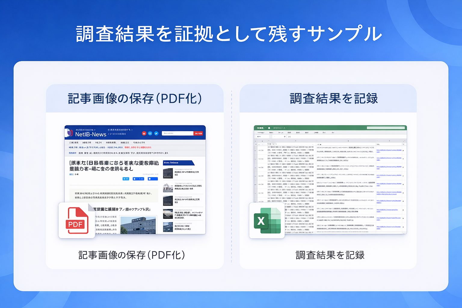 また、インターネット記事検索で取得した情報は閲覧していた記事が削除されることもあるため、URLを保存しておくだけでは十分ではなく記事の画像を保存しておくことをおすすめします。